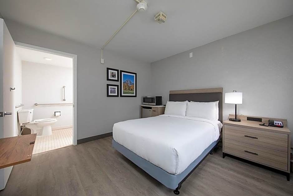 This room includes a roll-in shower and additional handicap accessible features.